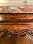 Buffet en enfilade de boiserie galbé et façade et sur les côtes en noyer d époque regence certainement de la région de Castres a coins arrondis le dessus avec un épais marbre à bec de corbin rouge des Pyrénées. État entièrement d d'origine il a juste et démonte et remonte pour passer les étages et il manque les clés que je dois faire. Je le présente dans l état dans lequel je l ai trouve c est un meuble très sain et de bonne facture. L épais marbre des Pyrénées est en parfait état. Meuble atypique très beau de dessin.